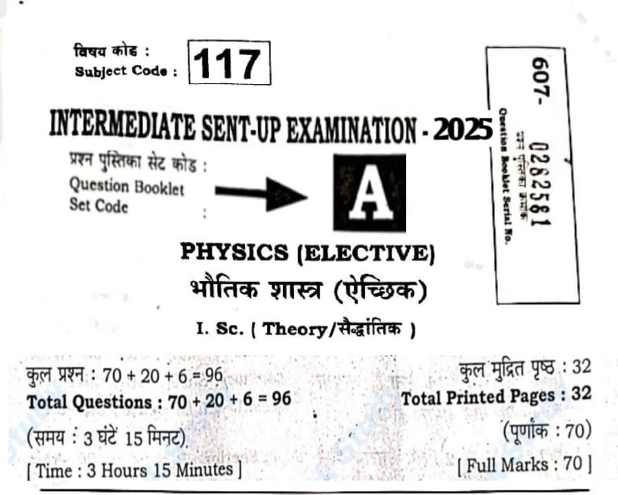 तो इसलिए सभी परीक्षार्थी अपने परीक्षा की तैयारी में लग रहे जैसा कि आप सभी को जानकारी है कि परीक्षा में समय बहुत कम बचा है | और आप सभी की sent Up  की परीक्षा जैसे ही समाप्त होगी उसके बाद  निर्धारित समय पर 12th Exam 2026 आयोजित किया जाएगा वार्षिक परीक्षा दो पालियों में आयोजित होता है, जिसमें प्रथम पाली की परीक्षा 09:30am से 12:45pm तक और 2nd Sitting की परीक्षा 02:00pm से 05:15pm तक परीक्षा का आयोजन होता है जिसमें सभी छात्र/छात्रा को परीक्षा में शामिल होना आवश्यक होता है क्योंकि यह आप सभी के बोर्ड परीक्षा होता है। 19 November 12th Physics Sent up exam Question Paper