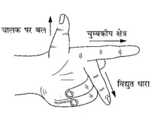1. चुंबकीय क्षेत्र में धारावाही चालक पर बल की दिशा: फ्लेमिंग का वाम हस्त नियम